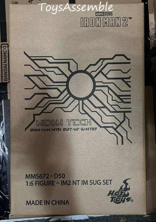 🔥Hot Toys MMS672D50 1/6 NEON TECH IRON MAN WITH SUIT-UP GANTRY